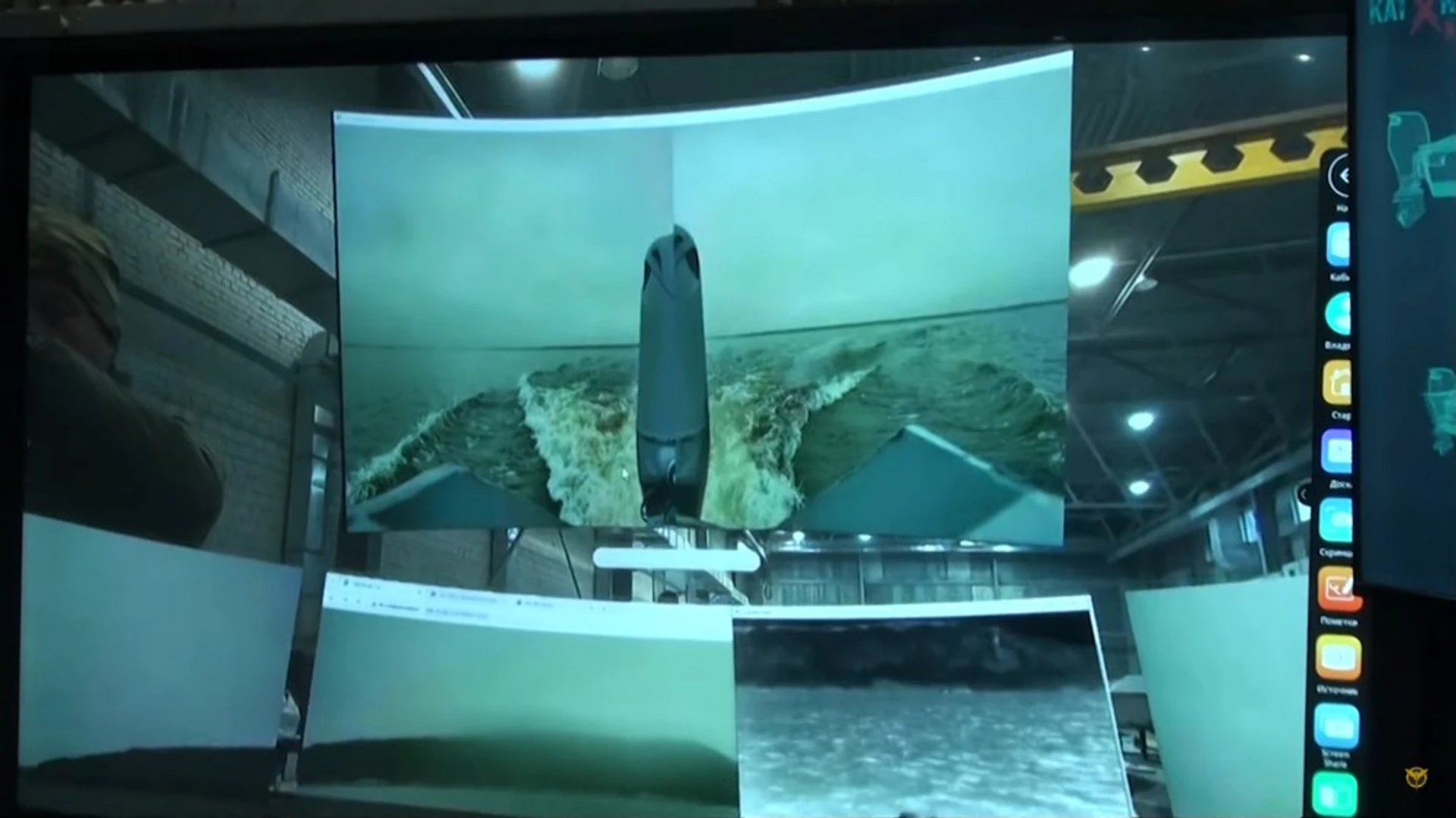 For the first time, the control station for the uncrewed surface vessel was also shown, featuring an operator’s seat with controls: an aircraft-style steering yoke and a throttle lever. Several buttons are visible on the yoke, one of which is likely responsible for bow pitch control of the uncrewed vessel.
