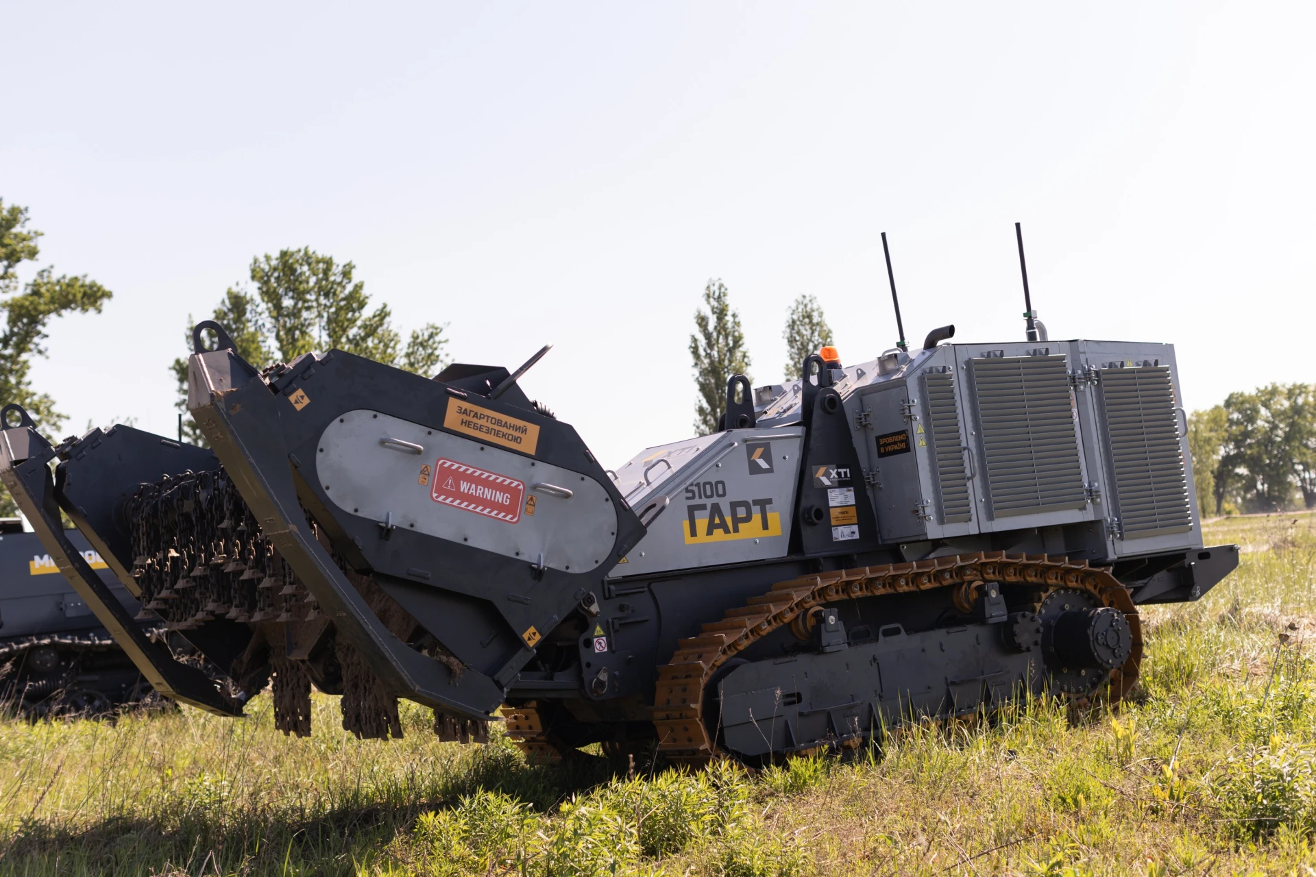 Recently, the first heavy remote demining complex, GART 5100, manufactured by the Ukrainian engineering company XTI Engineering, underwent the state certification procedure. The Ministry of Defence of Ukraine said that this device is designed to defuse various types of mines and other explosive objects by detonating them and destroying them with hammers of a chain unit or a cutter.