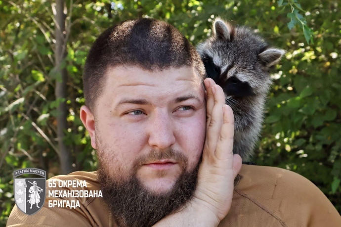 Soldiers from the 65th Velykyi Luh Separate Mechanised Brigade have shared photos of a rather unusual sister-in-arms – a young female raccoon they’ve nicknamed "Sergeant Molly".