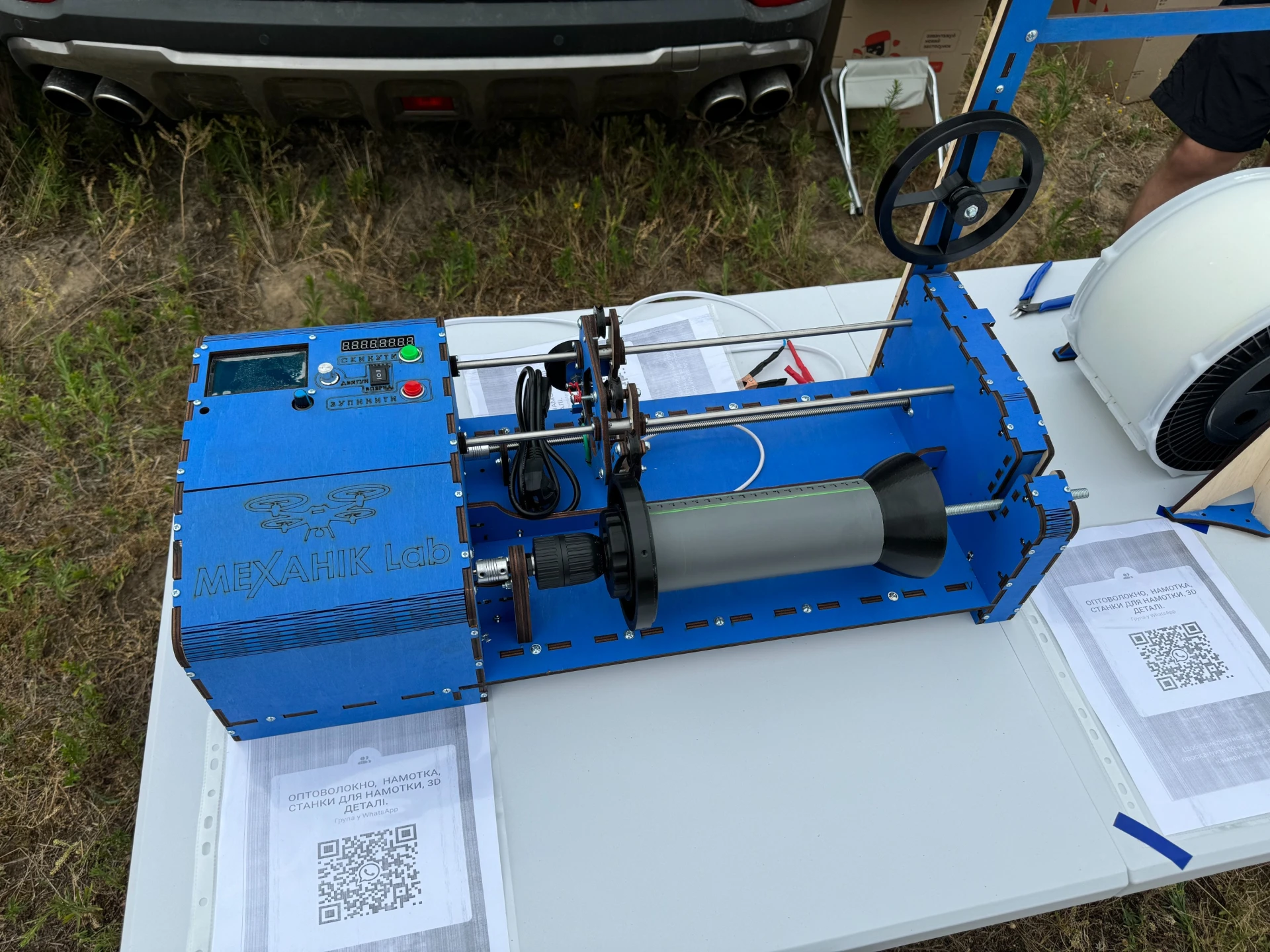 A team from Mechanic Lab showcased a custom-built fibre-winding machine capable of spooling 20 km of fibre per hour. The company representative said they can produce five such machines per day. Their key customers include military units and drone workshops in the rear.