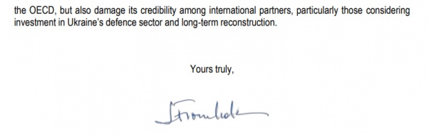 Quote: "If [the issue] left unresolved it would not only risk undermining Ukraine’s OECD Anti-Bribery Convention accession prospects and its efforts to join the OECD, but also damage its credibility among international partners, particularly those considering investment in Ukraine’s defence sector and long-term reconstruction."