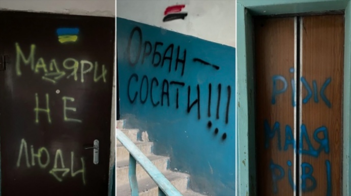 Hungarian media have received photos supposedly taken in a section of an apartment block in the city of Mukachevo in Zakarpattia Oblast showing anti-Hungarian graffiti on the walls. Ukrainian officials responded with humour.