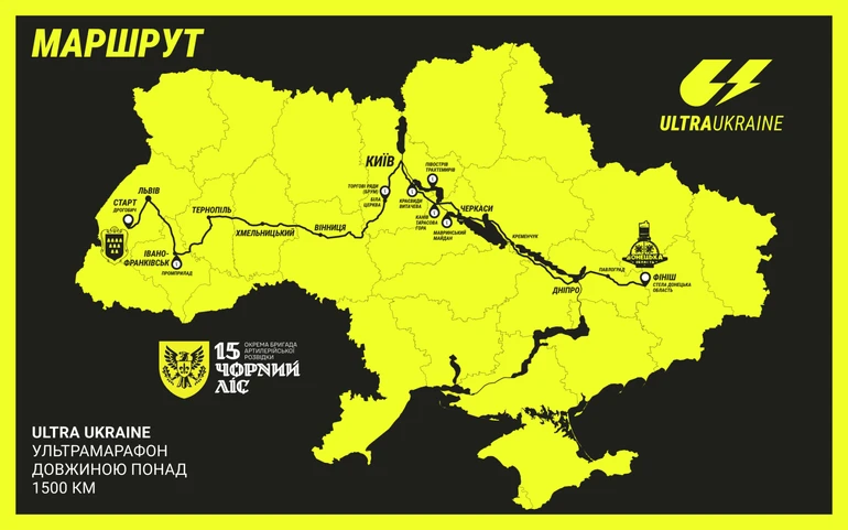 The ultramarathon started on 25 July in Drohobych, the brigade’s permanent base. The finish line will be near the Donetsk Oblast entrance sign outside the city of Pokrovsk. The route passes through major Ukrainian cities such as Lviv, Ivano-Frankivsk, Ternopil, Khmelnytskyi, Vinnytsia, Bila Tserkva, Kyiv, Cherkasy and Dnipro.
