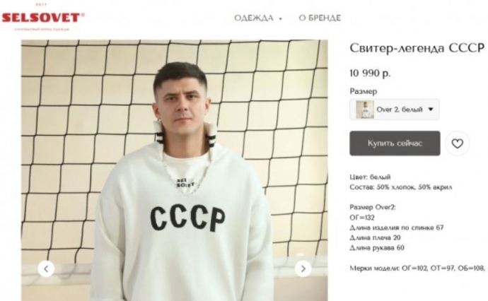 The Russian official appears to be wearing a sweater sold by the Russian clothing brand SelSovet, founded in 2017 in Chelyabinsk. Its price is listed on the company’s website as RUB 10,990 (about US$137).