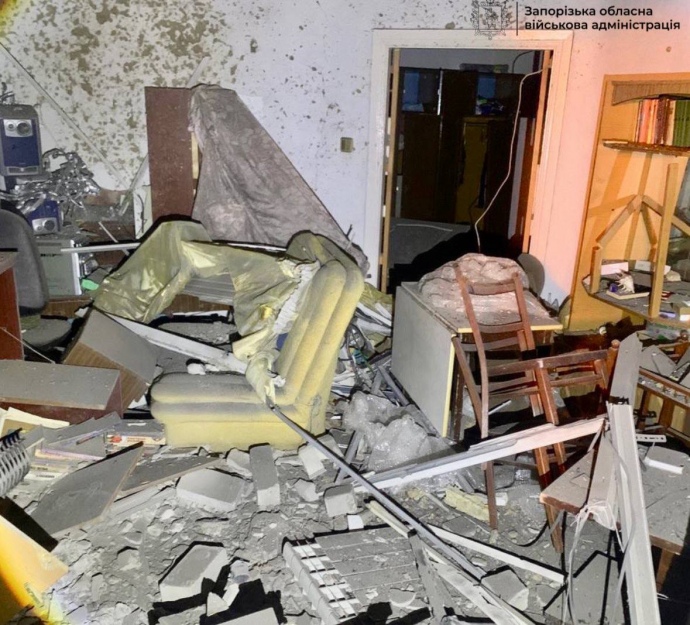 Houses have caught fire and power outages have been recorded in one of the Zaporizhzhia district hromadas due to a Russian attack on the night of 14-15 September. [A hromada is an administrative unit designating a village, several villages, or a town, and their adjacent territories – ed.]