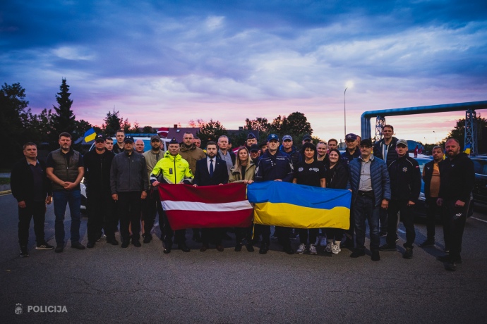In total, Latvia has sent 32 vehicles, almost half of which are former police cars that were scheduled for replacement.