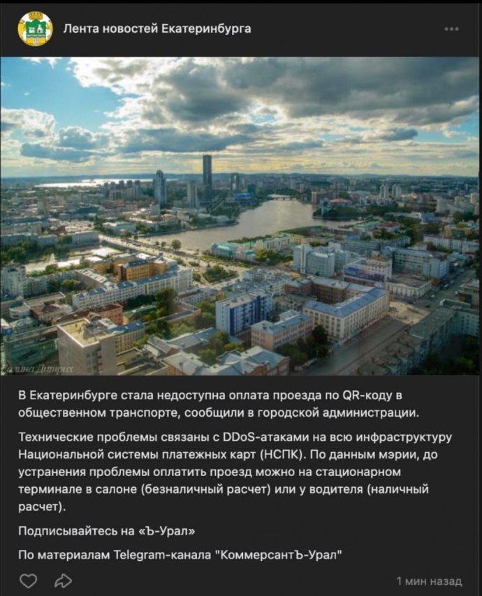 Social media in Yekaterinburg has been flooded with complaints after online payments for buses and petrol stations stopped working.