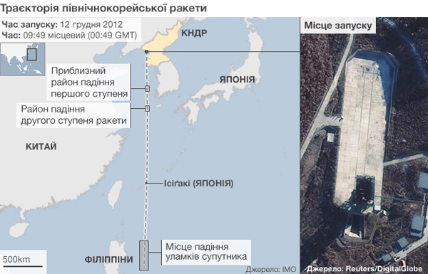Триступеневу ракету запустили з західного узбережжя Північної Кореї. Планувалося, що ракета пройде між Корейським півостровом і Китаєм.