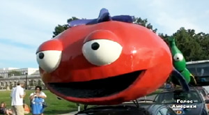 Смішні машини-клоуни з напів-овочем - напіврибою на даху привертають увагу громадськості до серйозного питання – поширення генетично модифікованих продуктів. Активісти за здорове харчування та права споживачів проводять акції по всій країні у намаганнях домогтися обов’язкового маркування продуктів, які містять ГМО. Сьогодні 80% продуктів на полицях крамниць містять генетично модифіковані продукти, але без відповідного попередження, тому покупці про це навіть не знають.