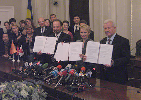 "Наша Україна", СПУ та БЮТ підписали протокол. Який передбачає прем’єрство Тимошенко?