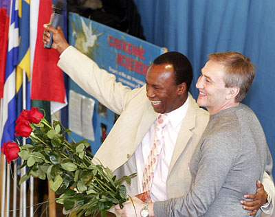Київський мер Леонід Черновецький привітав пастора "Посольства Божого" Сандея Аделаджа з днем народження.