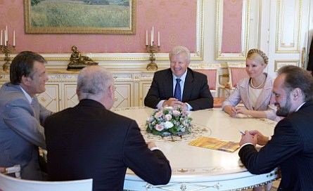 Президент Віктор Ющенко зустрівся з лідером фракції БЮТ Юлією Тимошенко, керівником фракції "Наша Україна" Романом Безсмертним та лідером фракції СПУ Олександром Морозом.