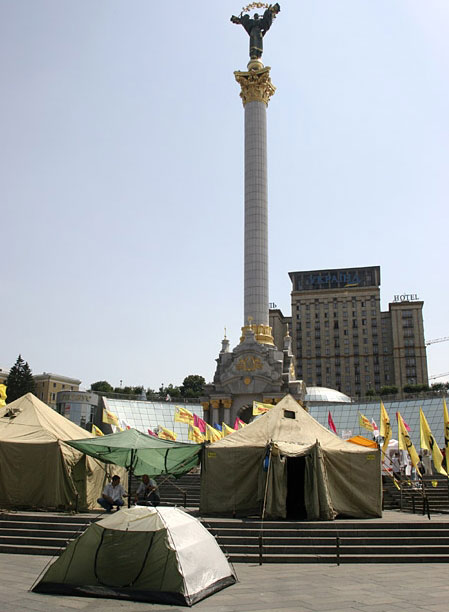 Уже більше 50 наметів прихильників Блоку Юлії Тимошенко встановлено в даний час на головній площі столиці України - Майдані Незалежності.