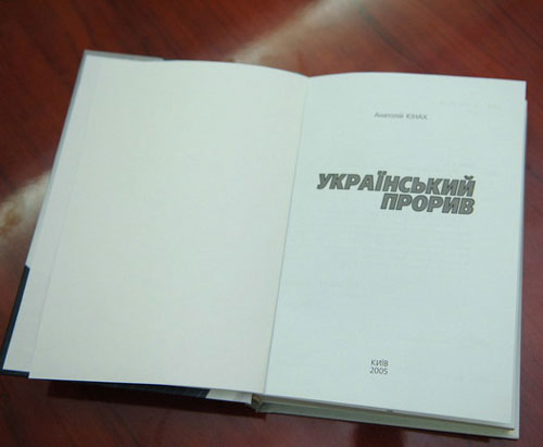 Прес-служба також додає зображення обкладинки книги Кінаха "Український прорив", що вийшов у столичному видавництві "Три крапки" у 2005 році.