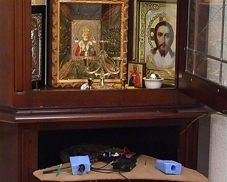 | Обладнання, виявлене у внутрішньому кабінеті поряд з іконостасом. Усі фото з сайту Mukola.net |