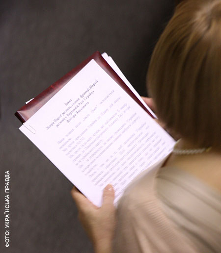 Кореспондент "Української правди" зафіксував, як Герман принесла заяву Януковичу.