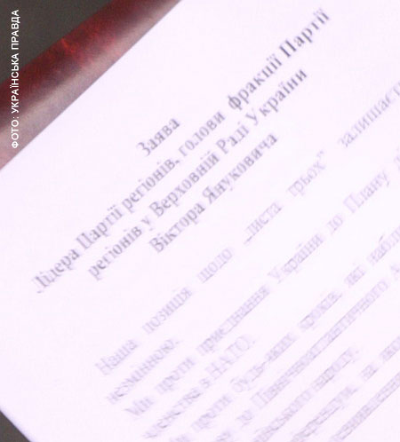 "Ми проти приєднання України до Плану дій щодо членства в НАТО. Ми проти будь-яких кроків, які наближали б нашу державу до Північноатлантичного Альянсу без згоди на те українського народу", - сказано у заяві Януковича, поширеній прес-службою партії.