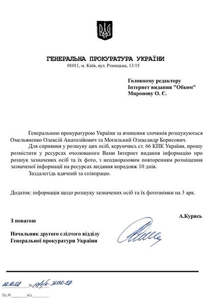 Перед цим видання опублікувало інформацію про те, що заступник генерального прокурора України Ренат Кузьмін ухвалив на минулому тижні порушити кримінальну справу щодо Омельяненка.