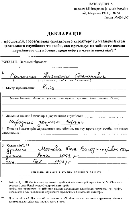 Це випливає з декларації про доходи Гриценка за 2008 рік, оприлюдненої на його сайті.
