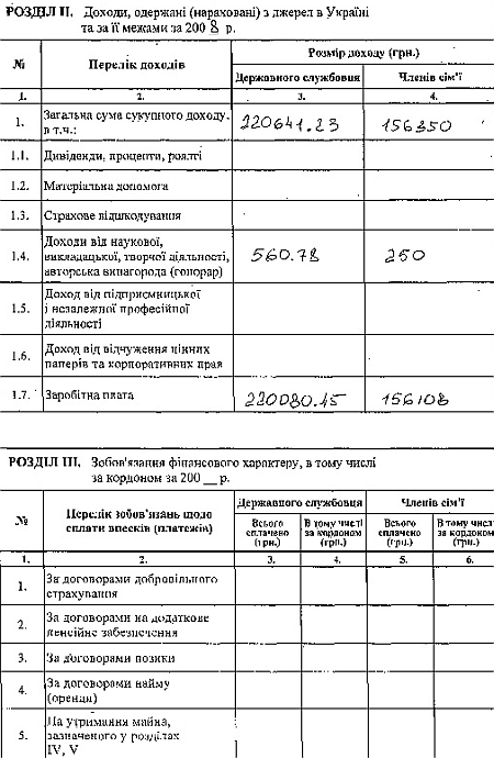 Депутат від НУ-НС Анатолій Гриценко заробив за 2008 рік 220 641,23 гривень.