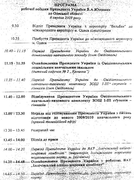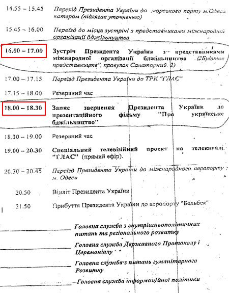 Також з 18:00 до 18:30 заплановано запис звернення Ющенка до презентаційного фільму про українське бджільництво.
