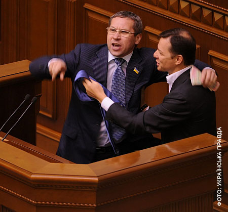 Такий висновок можна зробити з чергової сварки бютівця Олега Ляшка та Владислава Лук'янова, які зранку ледь не побилися біля президії.