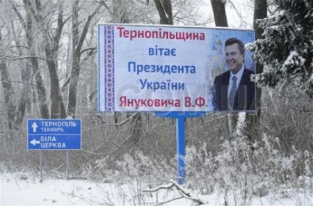 На Тернопільщині з'явились білборди, на яких Віктора Януковича вітають як президента України.