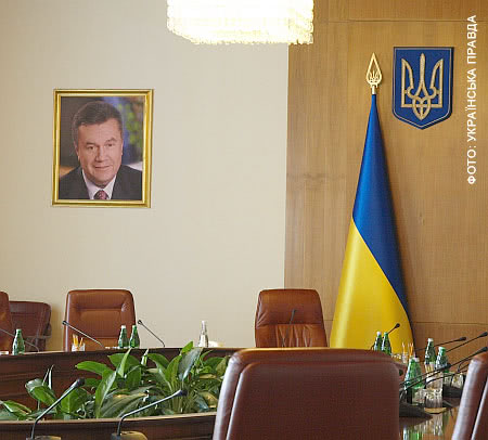 У залі, де традиційно проходять засідання уряду, на стіні розмістили портрет президента Віктора Януковича.