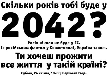 "Висловлюємо мирний протест угоді, що підписана президентом Януковичем, про зниження ціни на газ коштом пролонгації перебування в Україні російської військової бази! Запрошуйте друзів - тільки від вас залежить - де і як будуть жити ваші діти!", - сказано у заяві.