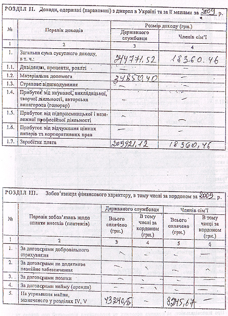 Про це свідчить його декларація про доходи за 2009 рік.
