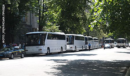 Як повідомляє кореспондент "Української правди", 4 автобуси вже чекають біля готелю "Київ", на вулиці Липській.