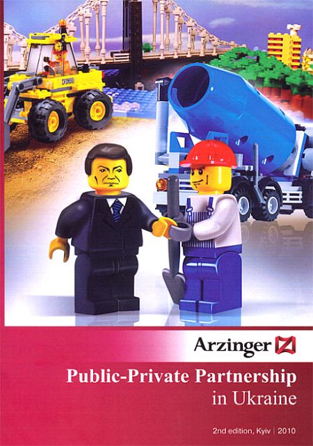 Так компанія "Arzinger" представила плакат, на якому зображений лего-чоловічок, схожий на Януковича, який тисне руку робітнику.