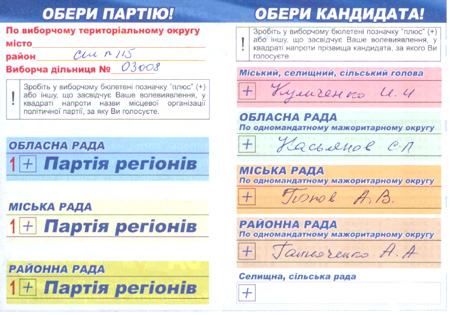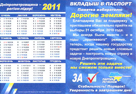 Громадяни отримали листівки від регіоналів, де розписано, за кого голосувати.
