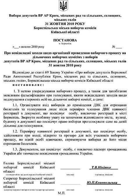 За її твердженням, "найбільш ефективним способом протидії таким фальсифікаціям може бути встановлення рішеннями ТВК або ДВК порядку голосування, який передбачав би перевірку паспортів та прописки на вході до виборчої дільниці".