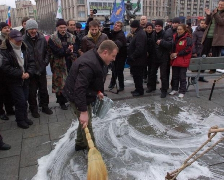 Після цього підприємці влаштували "миття" Майдану Незалежності.