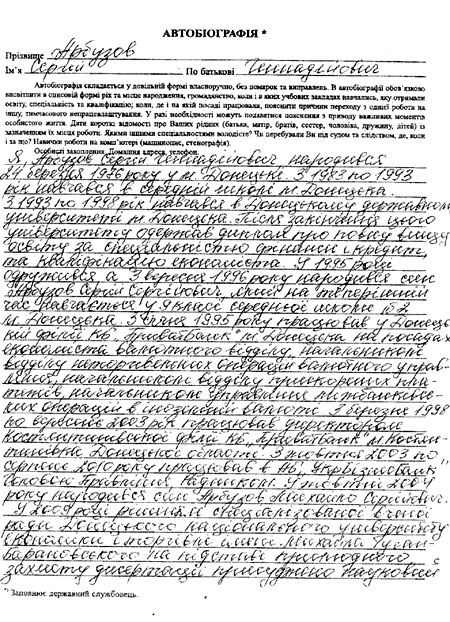 Кандидат на посаду глави Нацбанку Сергій Арбузов допустився помилки у власноруч заповненій автобіографії.