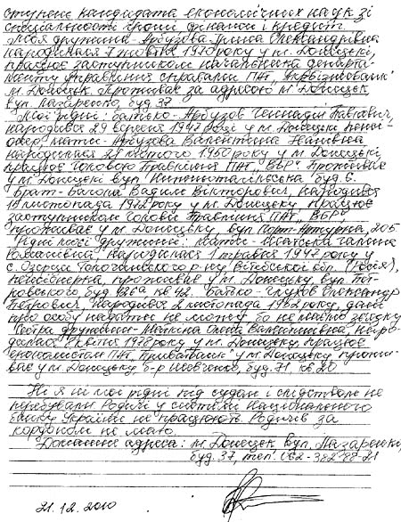 Так, перераховуючи членів своєї родини, Арбузов вказав родичів своєї дружини.