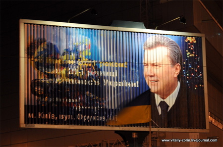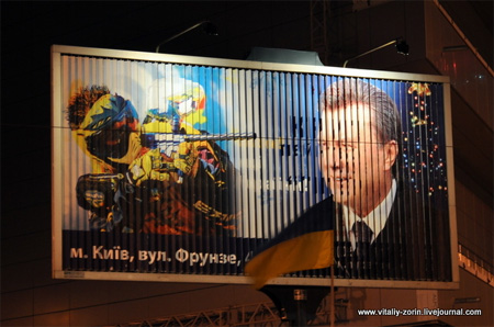 Блогер Віталій Зорін сфотографував зміну білбордів на одному зі стендів столиці. В одному кадрі була реклама пейнтбольного клубу. В іншому – вітання президента Януковича. При зміні фреймів вийшло, що спортсмен розстрілює президента.