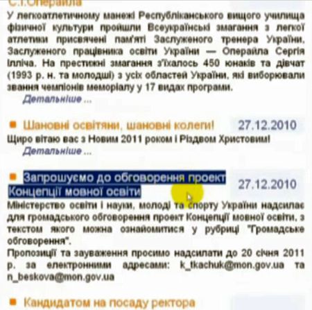 За спостереженням руху, у ніч із 23 на 24 січня з сайту Міносвіти прибрали повідомлення про те, що обговорення проекту згаданої Концепції розпочалося 27 грудня 2010 року, а з’явилася інформація, що пропозиції та зауваження приймалися з серпня 2010 року до 20 січня 2011 року.