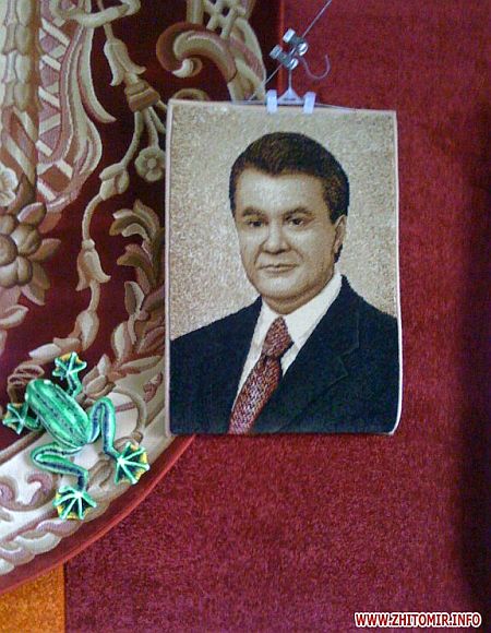 На центральному житомирському ринку "Рада", в одному з наметів з килимами й покриттям для підлоги, висить килимок із зображенням президента Януковича.