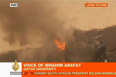 Телеканал Al Jazeera веде пряму трансляцію з мосту 6 жовтня, на якому протягом дня відбувалися сутички між поліцією та протестантами.