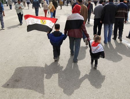 | Жінка не побоялася в п'ятницю вивести дітей на площу Тахрір, де ще кілька днів тому були сутички |
