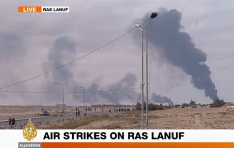 | Повстанці обстрілюють літаки, які наносять удари по місту Рас-Лануф |