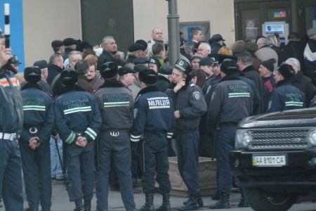 "Але за півгодини цією дорогою їхав кортеж Януковича, тому сюди під'їхав автобус ОМОН і міліція, і вони відтіснили людей на тротуар", - розповів один з вкладників.