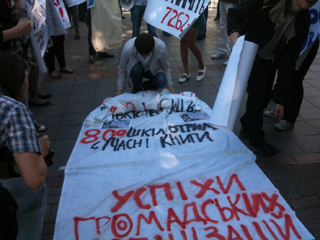 Як повідомляє організація "Новий громадянин", активісти громадських організацій розгорнули на землі біля входу до парламенту транспарант із переліком успіхів громадських організацій.