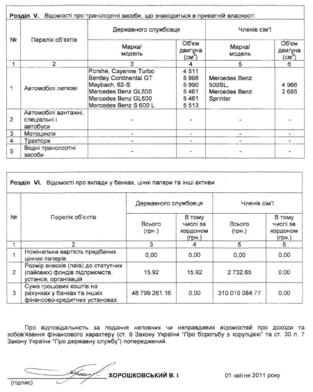 Сім`я Хорошковського їздить на Mercedes Benz 500 SL (4966) і Mercedes Benz Sprinter (2685).