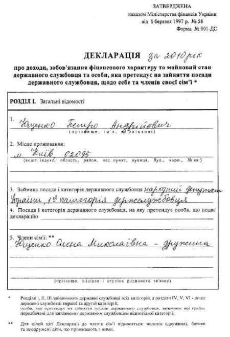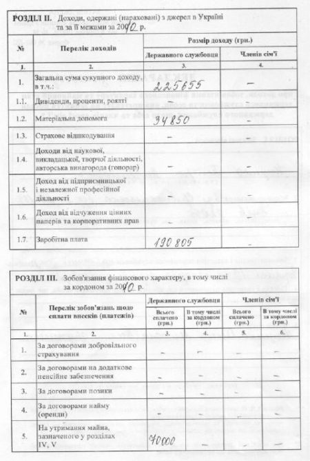 Про це свідчить його декларація, опублікована на офіційному сайті партії "Наша Україна".