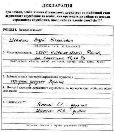 Cім`я Шевченка є власником квартири площею 107 квадратних метрів і автомобіля Honda CRV (об'ємом двигуна 2354).