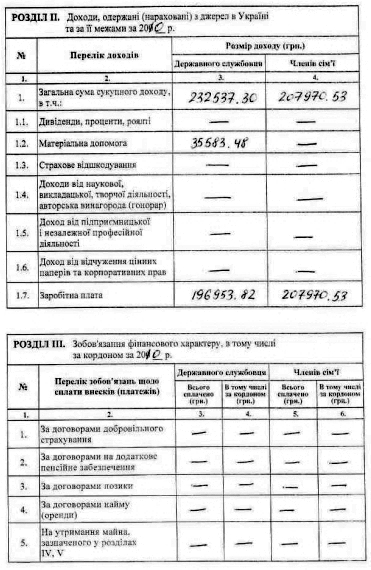 Про це свідчить його декларація, надана "Українській правді" на виконання закону "Про доступ до публічної інформації".