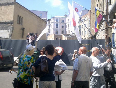 Депутати фракції БЮТ намагаються продертися в будівлю Головного слідчого управління.